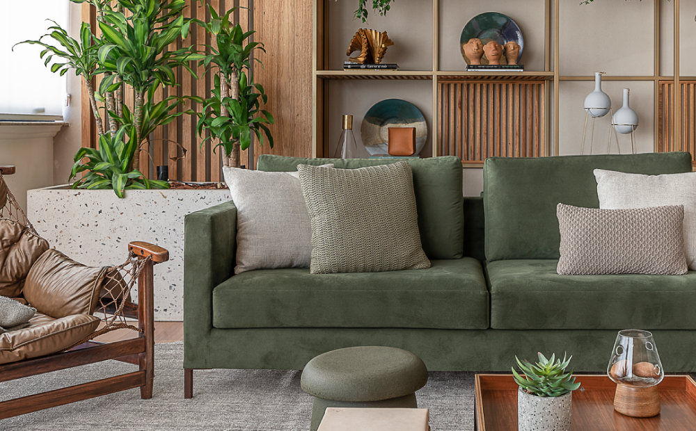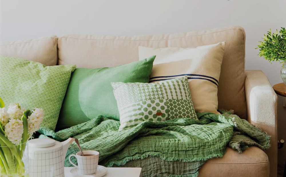 El verde es un color versátil que puede aportar frescura y vitalidad a tus ambientes invernales. Optá por tonalidades más oscuras, como el verde oliva o el verde bosque, para crear un contraste interesante con los tonos tierra y neutros.