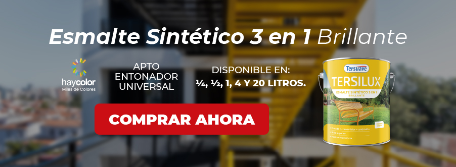El Esmalte Sintético 3 en 1 Brillante Tersilux te permite pintar tus muebles de exterior en una amplia gama de colores preparados (¡vienen listos para usar!), así como también podés entonarlo con Entonador Universal o pedir un color específico y te lo preparamos en sucursales con el sistema tintométrico Hay Color.